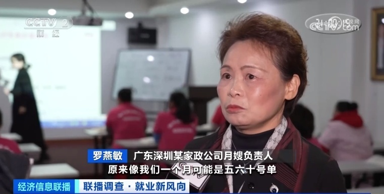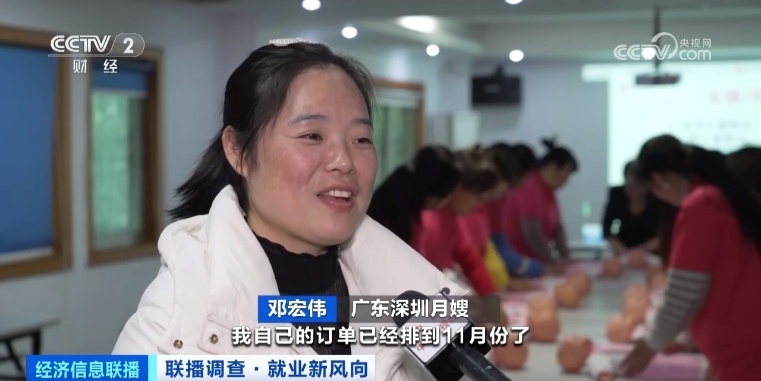 广东深圳某家政公司月嫂负责人 罗燕敏:月嫂订单比去年应该增长了30%到50%。原来我们一个月可能是五六十号单,现在可能有一百多号单。