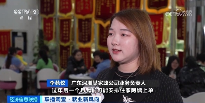 广东深圳某家政公司业务负责人 李苑仪:今年我们比较缺的是育婴师等专业的阿姨。之前,春节后一个月我们安排住家阿姨上单大概150多个,今年可能两三百个阿姨都不太够。