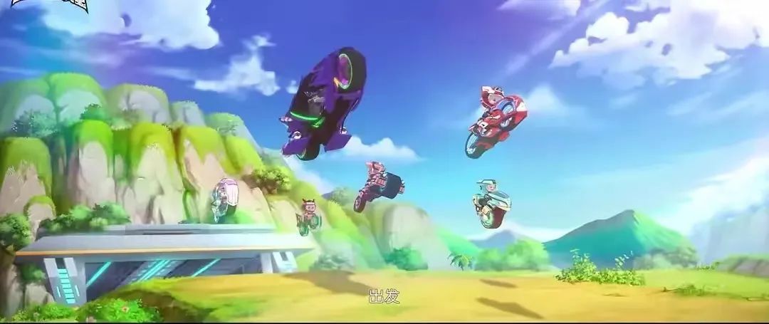 领命出发后,羊羊家族全体成员骑上全新设计、制造的摩托车嘻哈号,拉风地驶向海面。灰太狼也不忘搞笑本色,骑着那台单车拼命追赶,场面着实滑稽。当然,单车追赶摩托车的画面也没持续多久,灰太狼一键切换,单车也随之“变身”成拉风的天狼号。